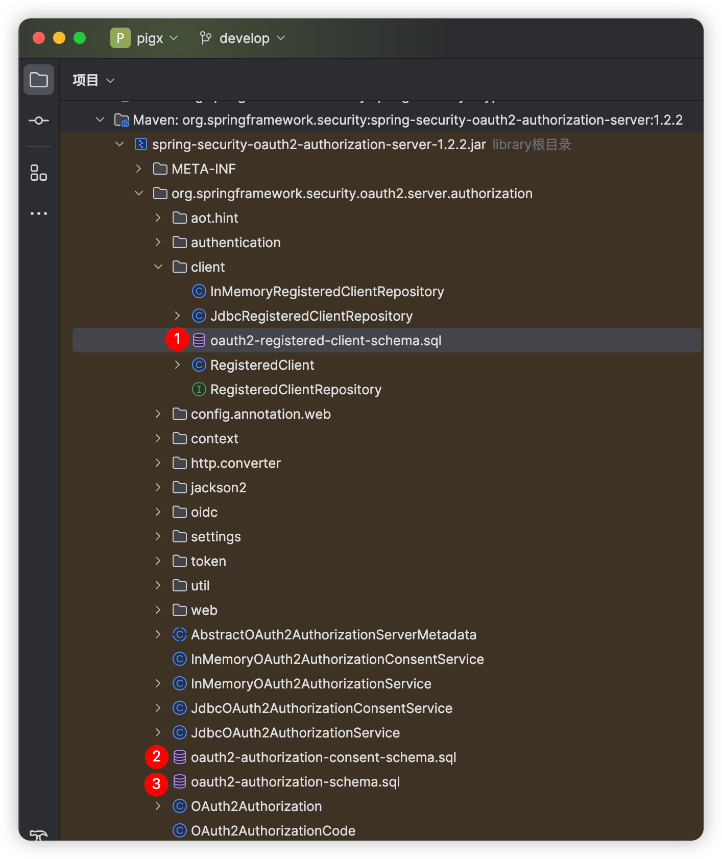 临时引入依赖,方便查看官方jar包中的sql脚本